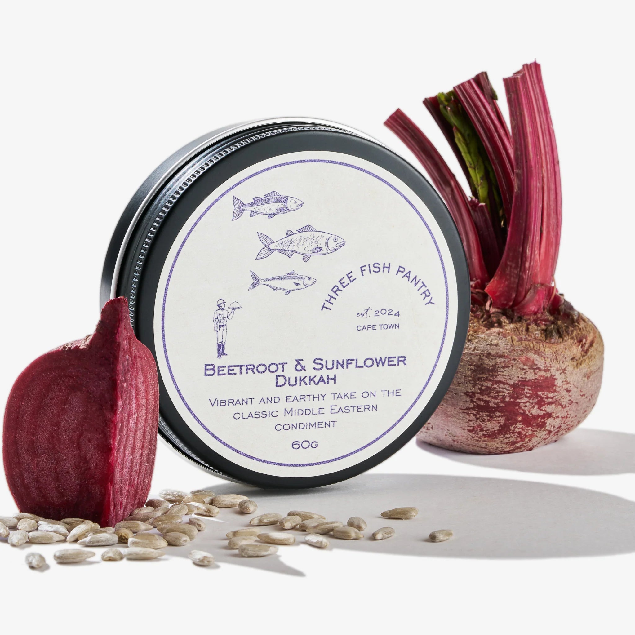 xA bold, earthy take on the classic dukkah — but with a twist that turns heads. Once it hits moisture, the beetroot releases a gorgeous purple blush that steals the show. Toasted sunflower seeds meet organic sunflower petals for a nutty, floral crunch that brings serious wow-factor to dips, breads, and roasted veg.