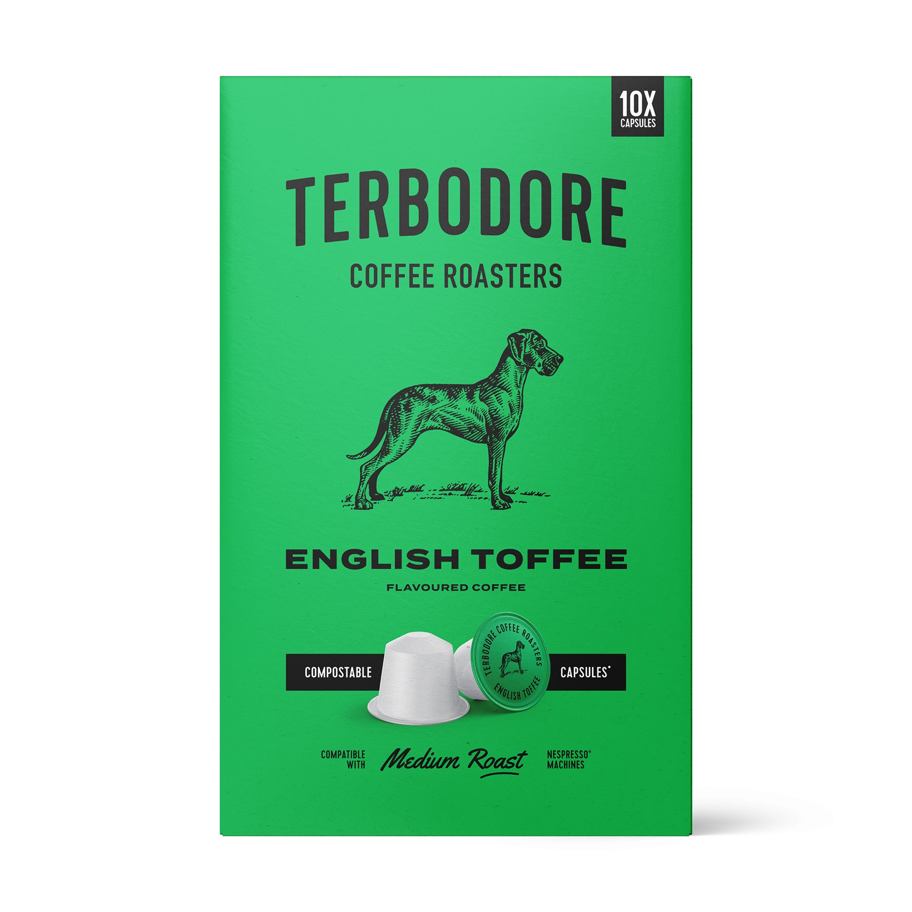 xTerbodore's English Toffee Flavoured Coffee Capsules have creamy, smooth toffee notes, loaded with brown caramel flavours with a rich butterscotch finish. Toffee syrup is added to 100% Arabica beans allowing the full complexity of flavor to penetrate each bean.