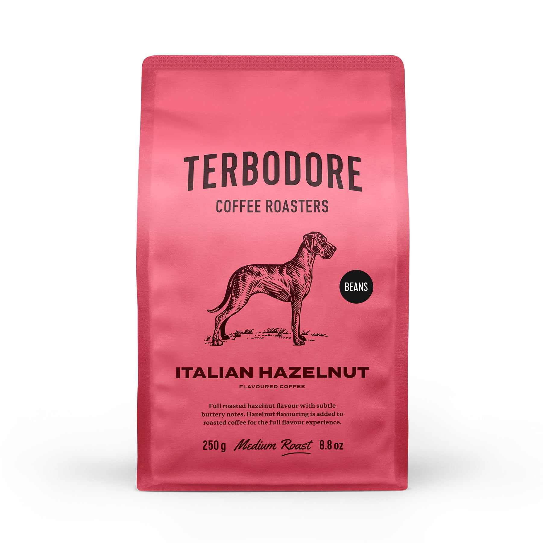 xThis Terbodore Italian Hazelnut Filter Coffee blend has a full roasted hazelnut flavour with subtle buttery notes. Italian Hazelnut flavouring is added to roasted coffee for the full flavour experience.